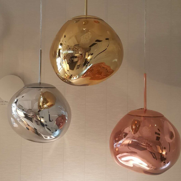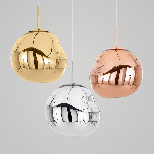lustre sphérique, suspension en métal, design miroir, luminaire moderne, lustre doré, lustre argenté, lustre cuivré, livraison Maroc