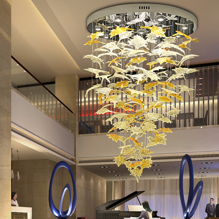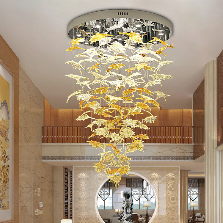 Ce plafonnier devient le centre visuel incontestable de votre pièce. Son jeu de reflets dorés évoque le mouvement gracieux du feuillage dans l’air, ajoutant une dimension artistique et chaleureuse à votre décoration intérieure.