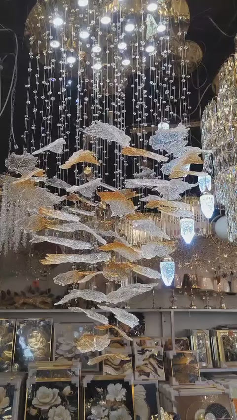 Plafonnier Cascade Dorée – Élégance Feuillage Suspendu