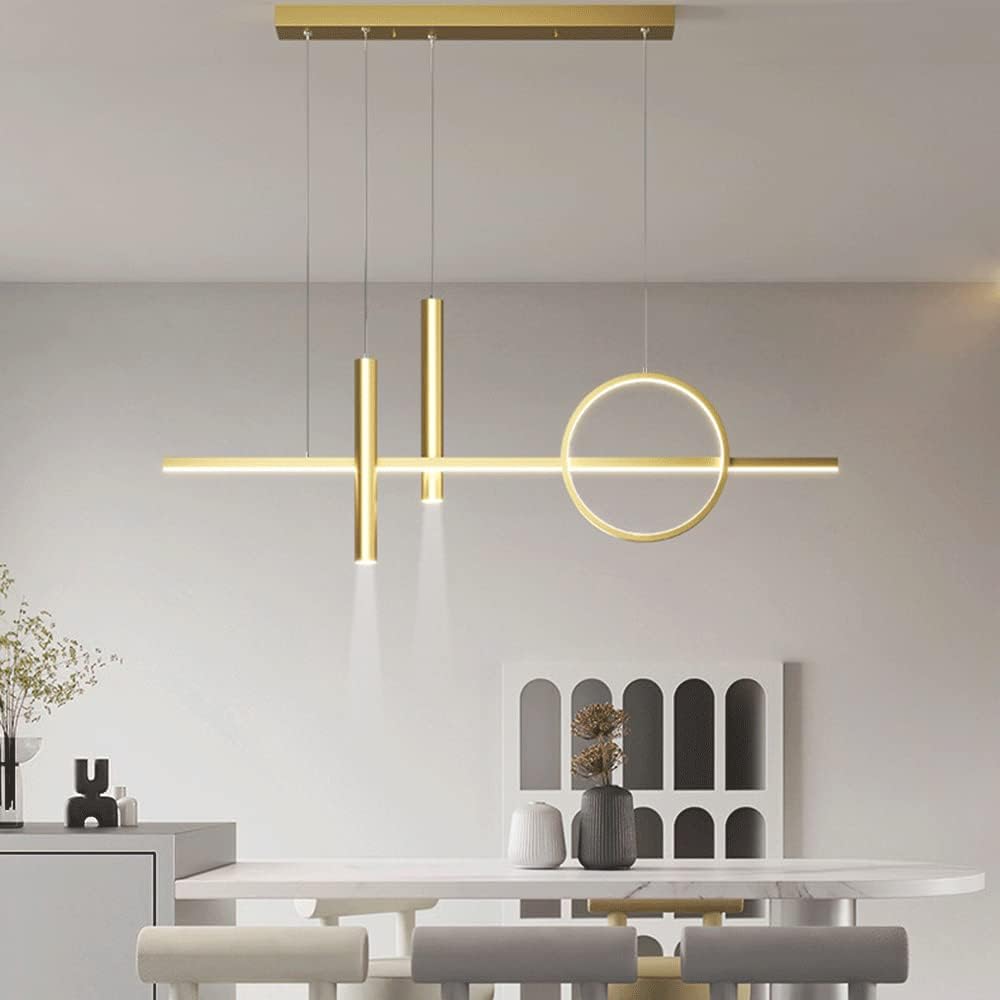 Description du Produit: Transformez votre intérieur avec cette suspension LED géométrique en métal doré, un véritable chef-d'œuvre de design moderne. Parfaite pour les salles à manger, les salons et les espaces de bureau, cette suspension combine des formes cylindriques et circulaires pour créer un effet visuel saisissant. L'éclairage LED intégré assure une lumière douce et économe en énergie, tout en ajoutant une touche de sophistication et de luxe à votre décoration. Fabriquée avec des matériaux de haute qualité, cette lampe est à la fois durable et élégante.